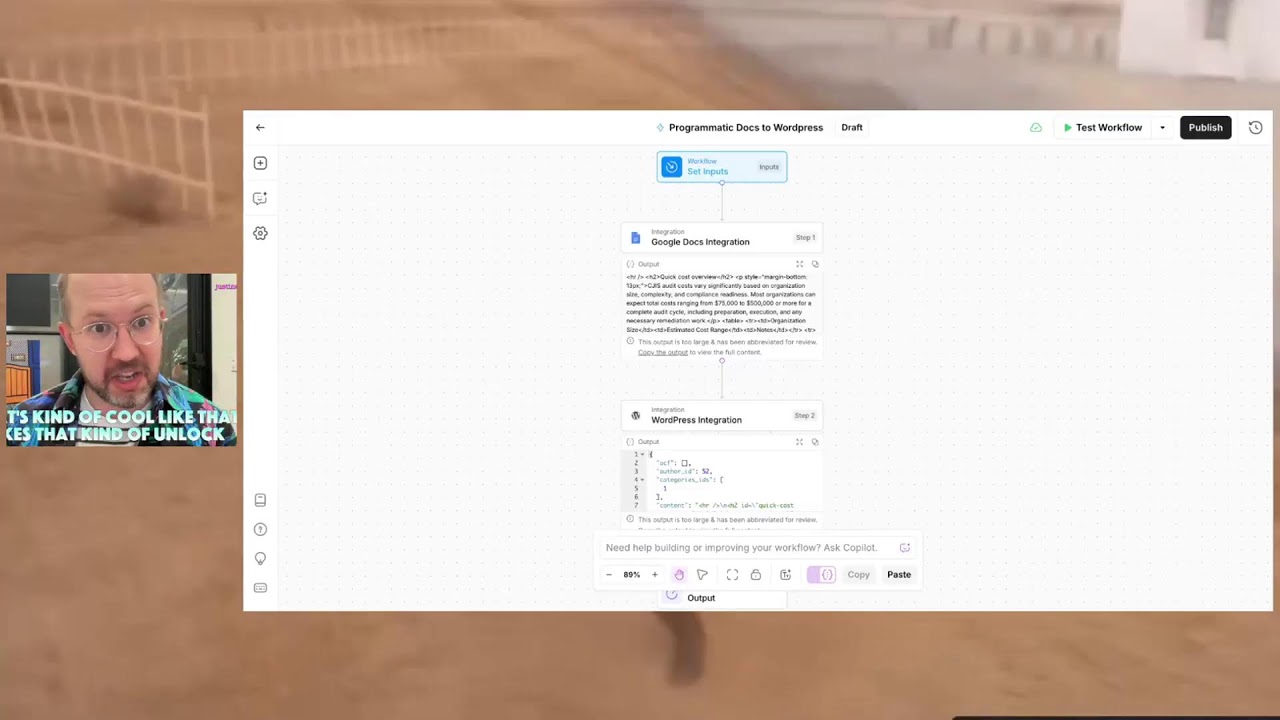 This very simple AirOps workflow will do exactly that. It grabs a Google doc and puts it into WordPress.